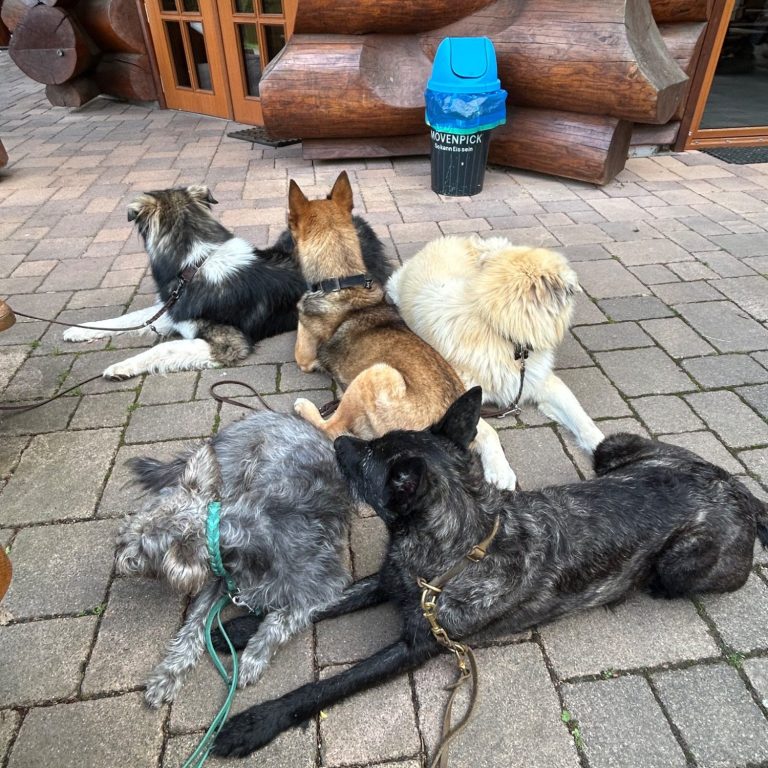 Hier geht es vor allem darum, die Orientierung eurer Hunde zu festigen und zu üben, dass man auch in trubeligen Situation entspannt bleiben kann.