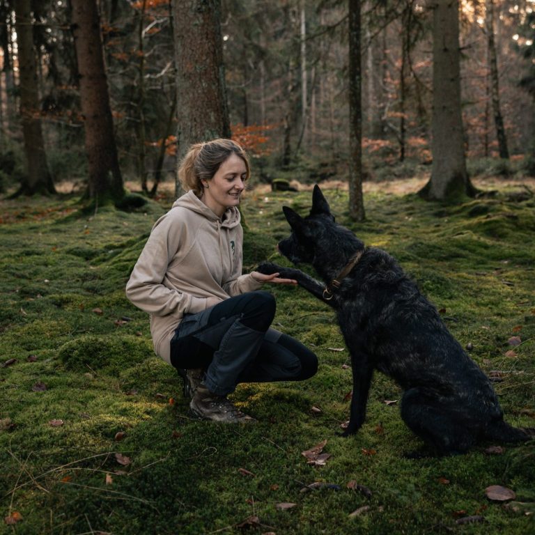 Die Entwicklung einer guten Beziehung und Bindung steht im Vordergrund, um die Grundlagen für ein entspanntes gemeinsames Leben zu legen. Außerdem werden unterschiedliche Orte mit verschiedenen Geräuschen und Untergründen erkundet und es wird sich im Sozialkontakt geübt.
